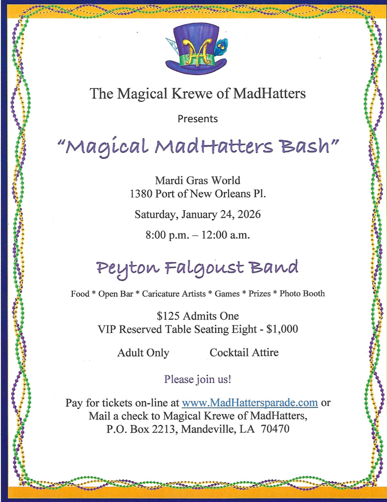 Magical Krewe of MadHatters P.O. Box 2213 Mandeville, LA 70470